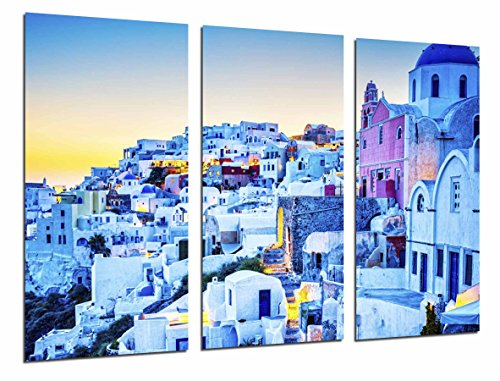 Multi trätryck konst tryck låda inramad bild vägg hängande – landskap solnedgång stad Italien, hus italiensk by, (total storlek: 97 cm x 62 cm), – inramad och redo att hängas upp – ref. 27000