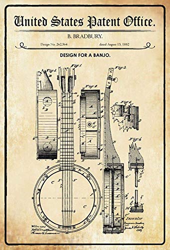 Schatzmix banjo Bradbury vägg retro järn affisch målning plakett plåt vintage personlig konst kreativ plåtskylt, 20 x 30 cm