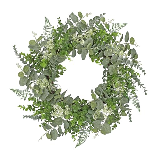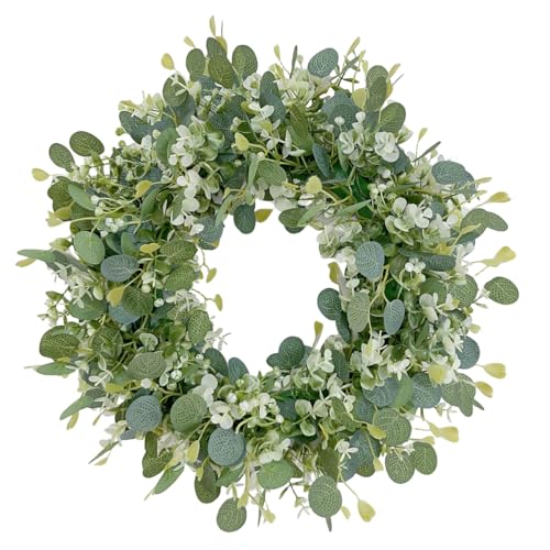 Kalsey Konstgjord eukalyptus, grön krans, dörrkrans, året runt, konstgjord dörrkrans, dekoration, väggkrans, för väggar, fönster, veranda, bondgård, terrass