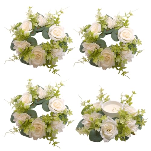 4 st ljusringar kransar, konstgjord hortensia krans ljus kransar för pelare jul bröllop hem bord fest dekoration