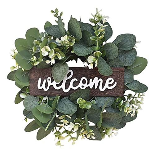 Wenrou Konstgjord eukalyptuskrans, ytterdörr, dörrskylt, krans, ytterdörr, eukalyptuskrans, välkomstskylt, dörrkrans, för bröllop, heminredning, ytterdörr, dekoration