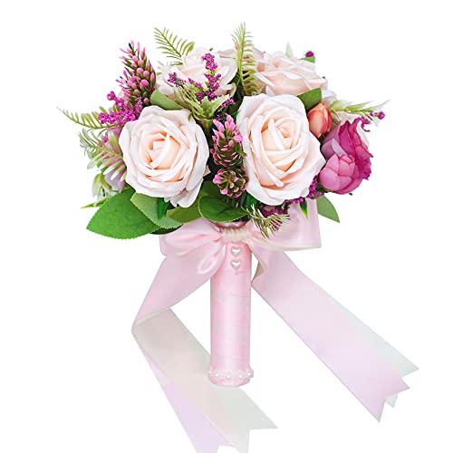 Floinla Blush & Magenta bröllopsbuketter för brud brudtärna konstgjorda rosor blommor brudbukett för rustik fransk vintage formell bröllopskyrka heminredning