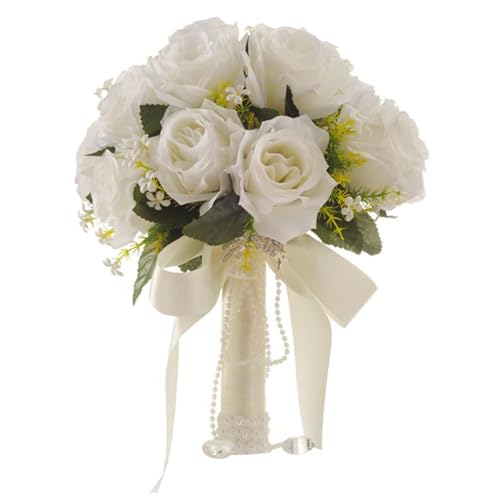 YYBS Brudbukett, Vit Konstgjord Konstgjord Rosa Blomma, Brudbukett Konstgjorda Rosor, Brudtärna Bukett, Lämplig för bröllop, Fester