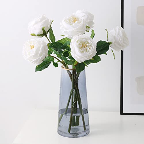 Ukeler Vita konstgjorda rosor 4 st äkta touch latex konstgjorda blommor Austin ros pion med lång stam för bröllopsbukett heminredning blomsterarrangemang alla hjärtans dag gåva
