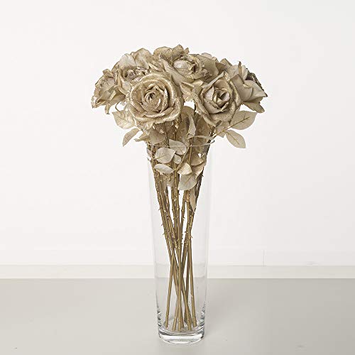 Mocoosy 12 st konstgjorda rosor falska blommor för dekorationer, champagne silkesrosor enkel stam blommor konstgjord bukett för bröllop bordsuppsats, arrangemang, alla hjärtans dag, födelsedagsfest