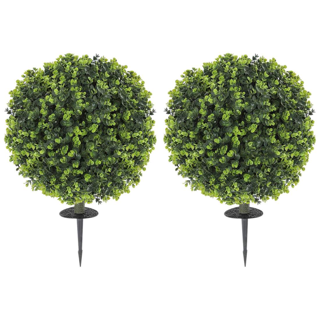 Set med 2 konstgjorda buxbombollar 40 cm konstgjorda växter med markspets, konstgjorda växter, plast som äkta dekoration för var