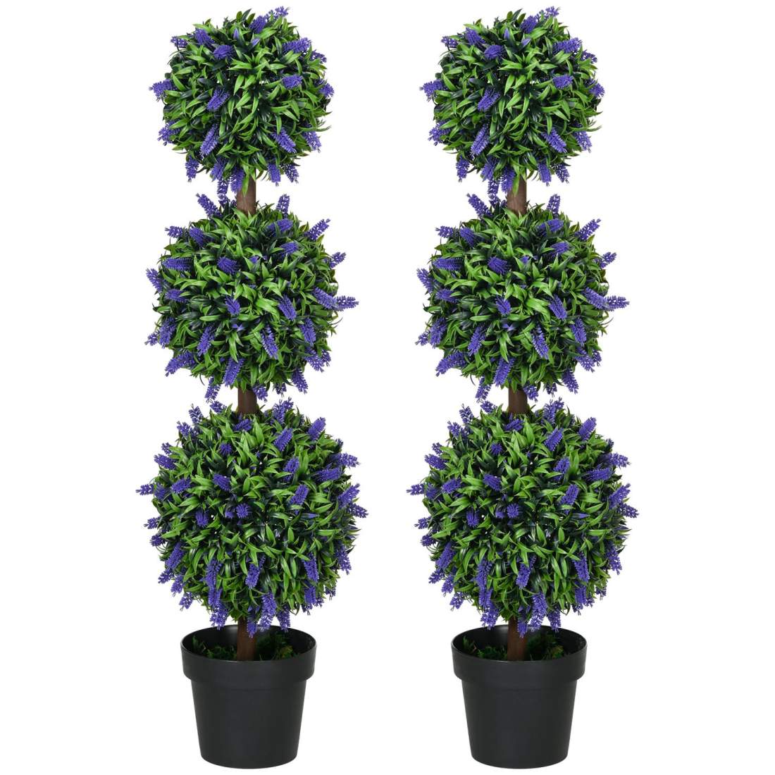 Set med 2 konstgjorda lavendelträd stora 110 cm konstgjorda växter, konstgjorda plastväxter i kruka, UV-beständiga konstgjorda b