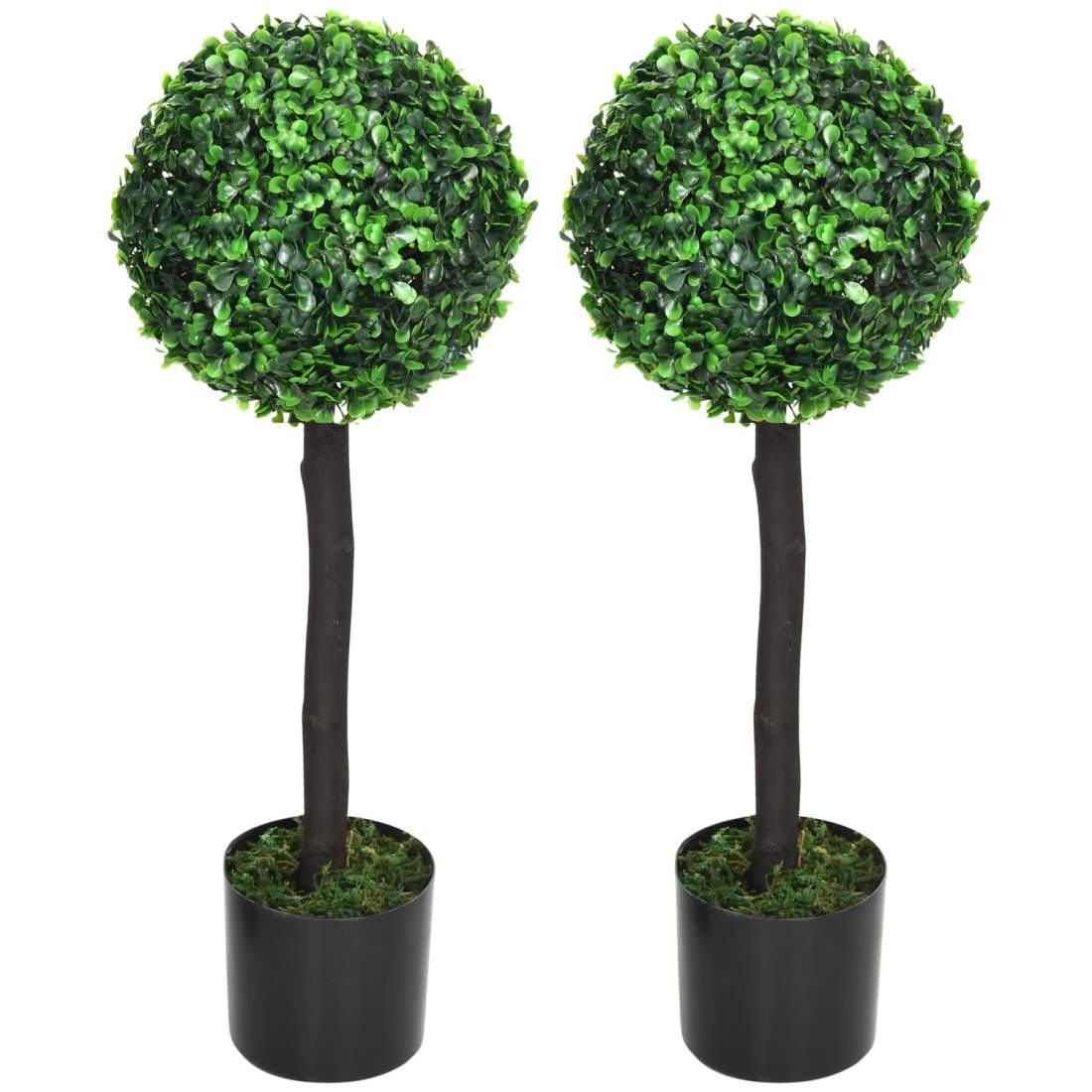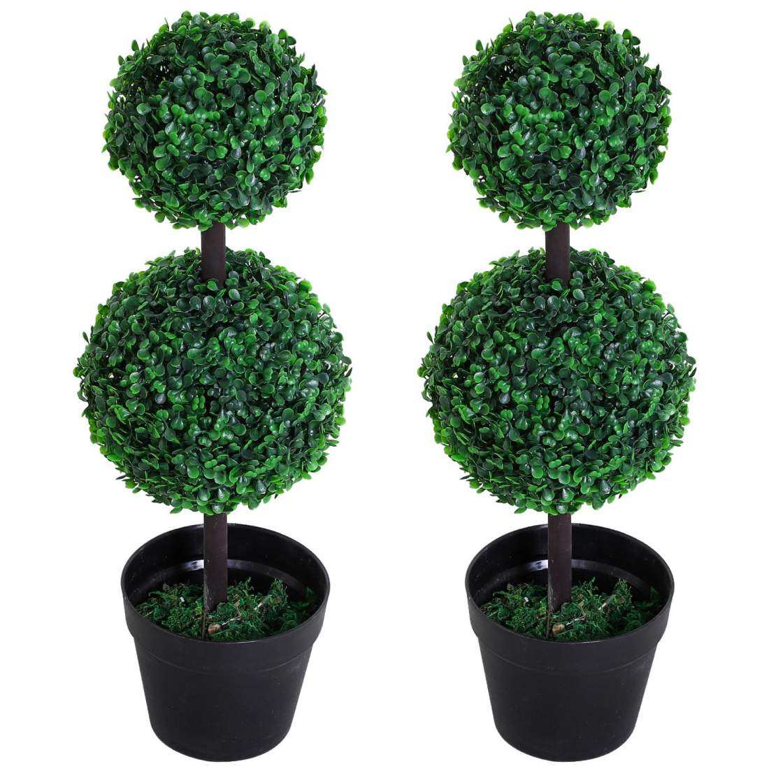 Konstgjorda växter, set om 2 buxbom, 90 cm konstgjord växt med dubbelkula, UV-beständig krukväxt, konstgjord träd, växtdekoratio