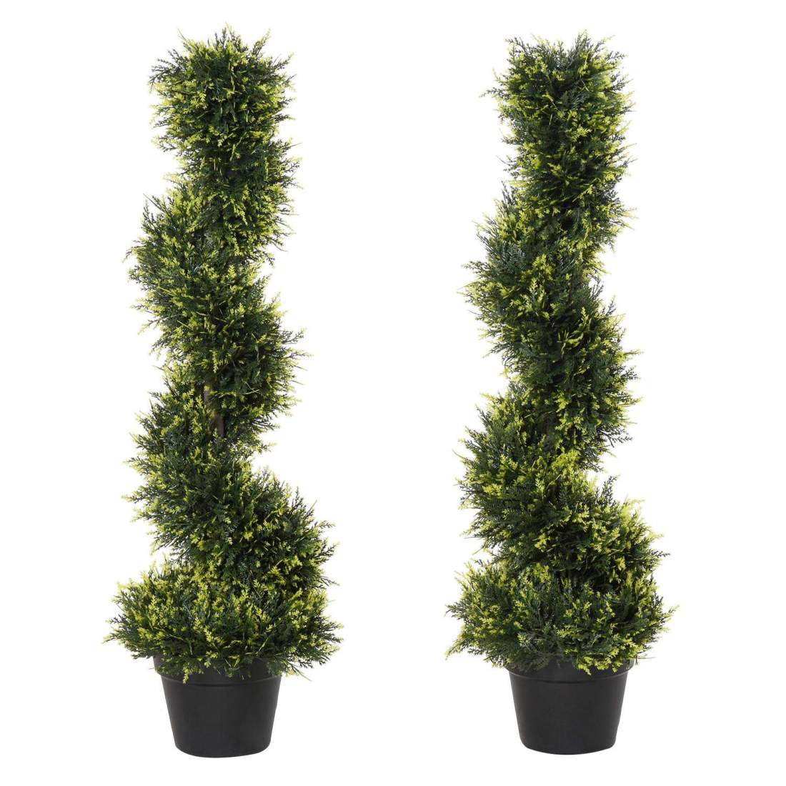 Set med 2 konstgjorda cederträd stor 90 cm konstgjord växt, plast konstgjorda växter ceder i kruka, spiralväxt som äkta för vard