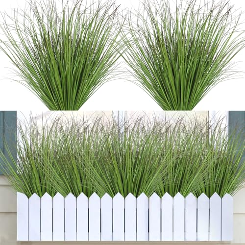 DEMIUKO 16 buntar konstgjorda växter gräs utomhus falska växter buske 20 i konstgjort vete gräs UV-resistenta grönska stjälkar lök gräs falska buskar för inomhus utomhus trädgård fönsterlåda dekor