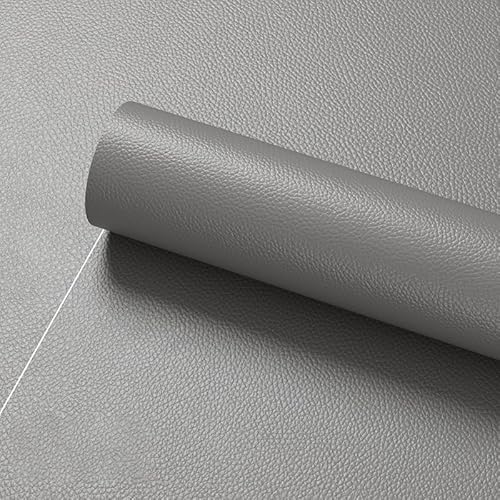 MYSHELL Konstläder självhäftande metervara, läder självhäftande reparationslapp PU, konstläder reparationsset för soffa, bilstol, möbler, motorcykel, handväskor (grå, 40 x 300 cm)