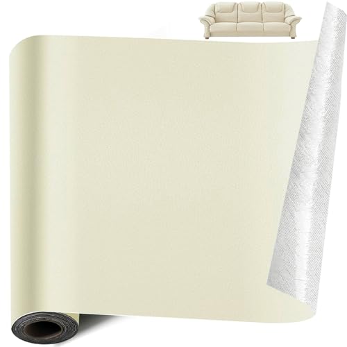 Konstläder, självhäftande, metervara, 30 x 100 cm – läder, vinyl, reparation, lappset för möbler/soffor/stolar/bilsäten/skåp/handväskor repor sprickor hål, vattentät och slitstark, gräddvit