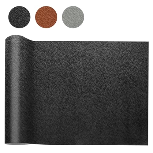 Konstläder, självhäftande, metervara, svart, reparationssats, 44 x 300 cm – självhäftande läder, reparationssats, bilstol, självhäftande läderlappar, för soffa – läder, självhäftande reparationssats