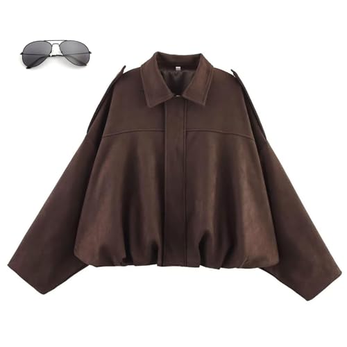 YCYATS Mocka jacka dam, trendig bomberjacka kort, överdimensionerad övergångsjacka av konstmocka, höstjacka retro Y2K streetwear, BRUN, M