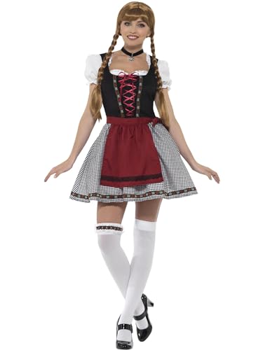 Smiffys flirtande frässel bayersk kostym, svart, med kort klänning, falsk konstmocka-livstycke, topp och förkläde
