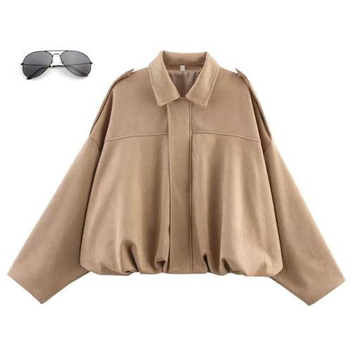 YCYATS Mocka jacka dam, trendig bomberjacka kort, överdimensionerad övergångsjacka av konstmocka, höstjacka retro Y2K streetwear, kaki, S