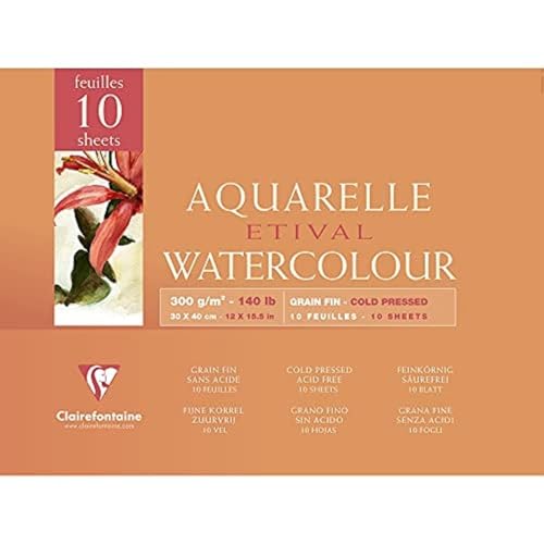 Clairefontaine - Ref 96572C - Etival kallpressad limmad akvarell målning och ritplatta (10 ark papper) - 30 x 40 cm - 300 gsm cellulosa konstpapper