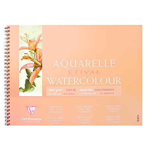 Clairefontaine - Ref 96072C - Etival kallpressad trådbunden akvarellmålning och ritplatta (12 pappersark) - 30 x 40 cm - 300 gsm cellulosa konstpapper