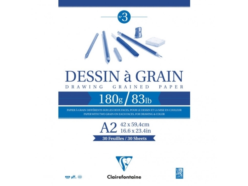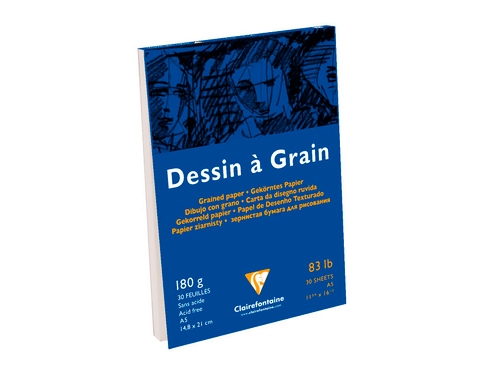 Clairefontaine - Ref 97645C - Etival färg svartkornigt limmat pappersblock (20 pappersark) - A3 (42 x 29,7 cm), 160 gsm cellulosa konstpapper, kornig textur
