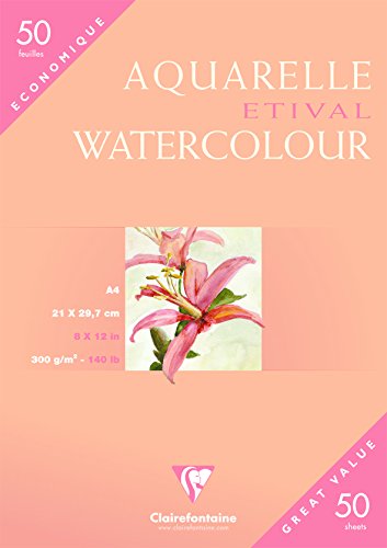 Clairefontaine - Ref 96469C - Etival kallpressade ark för akvarellmålning och ritning (50 ark papper) - A4 (29,7 x 21 cm) - 300 gsm cellulosa konstpapper
