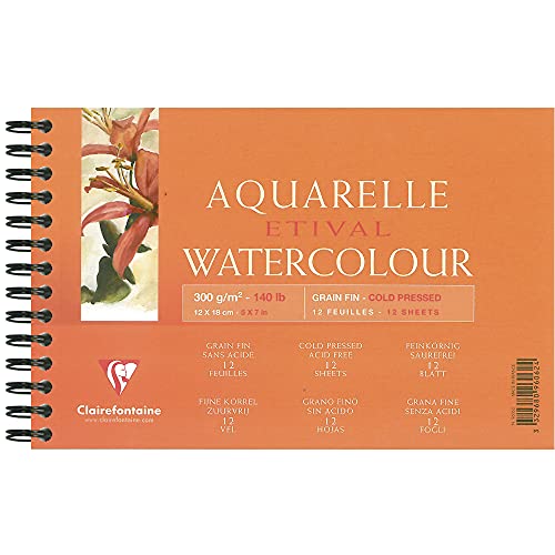 Clairefontaine - Ref 96062C - Etival kallpressad trådbunden akvarellmålning och ritplatta (12 pappersark) - 12 x 18 cm - 300 gsm cellulosa konstpapper