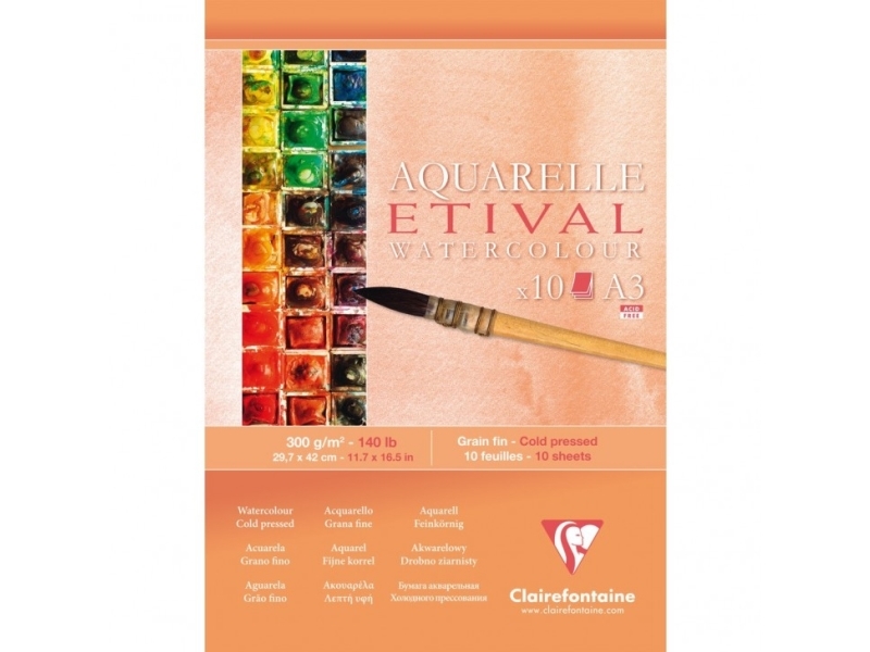 Clairefontaine - Ref 96306C - Etival kallpressad ekonomisk limmad akvarellmålning och ritplatta (10 pappersark) - A3 (42 x 29,7 cm) - 300 gsm cellulosa konstpapper