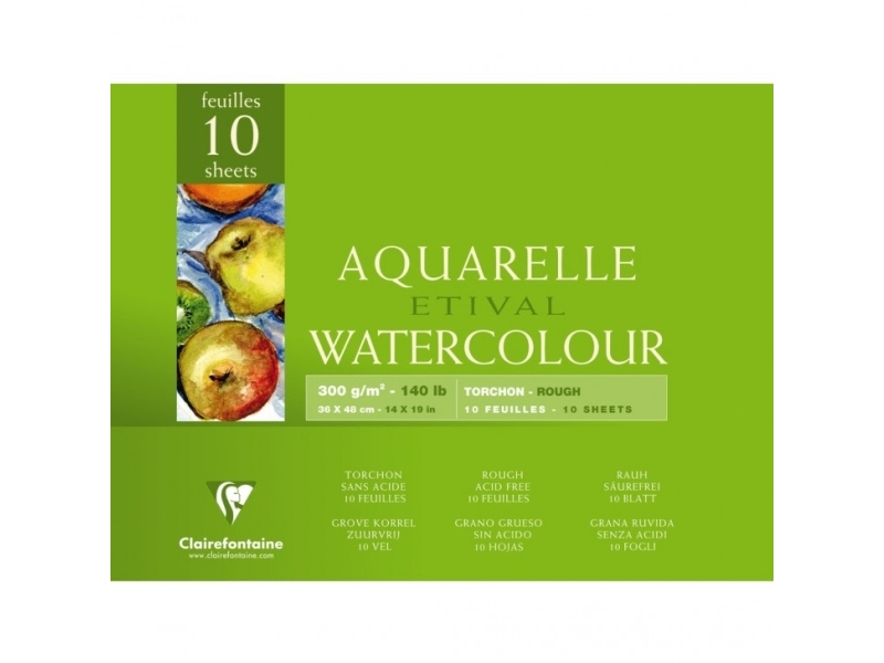 Clairefontaine - Ref 96571C - Etival kallpressad limmad akvarell målning och ritplatta (10 ark papper) - 24 x 30 cm - 300 gsm cellulosa konstpapper