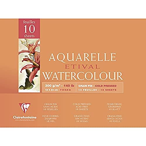 Clairefontaine - Ref 96304C - Etival kallpressad ekonomisk limmad akvarellmålning och ritplatta (10 pappersark) - A5 (21 x 14,8 cm) - 300 gsm cellulosa konstpapper