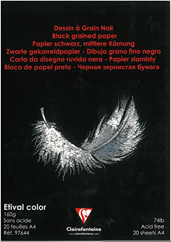 Clairefontaine - Ref 97644C - Etival färg svartkornigt limmat pappersblock (20 pappersark) - A4 (29,7 x 21 cm) - 160 gsm cellulosa konstpapper, kornig textur