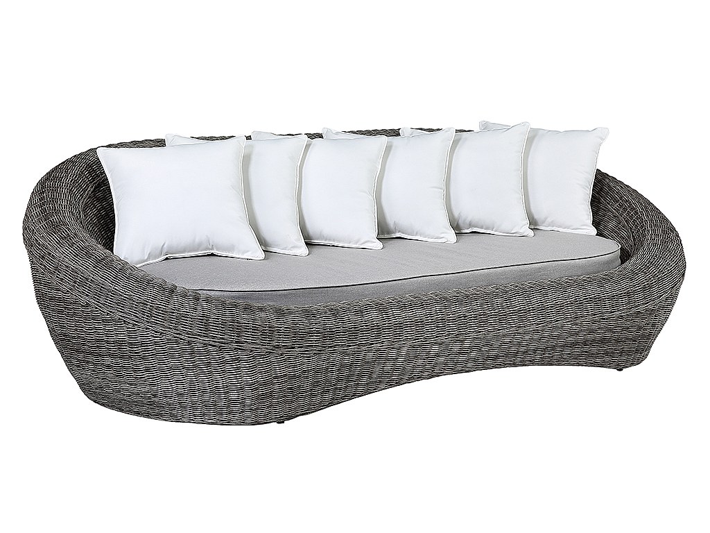 Trädgårdsloungeset i grå konstrotting med soffa 2 fåtöljer och soffbord WHITEHEAVEN