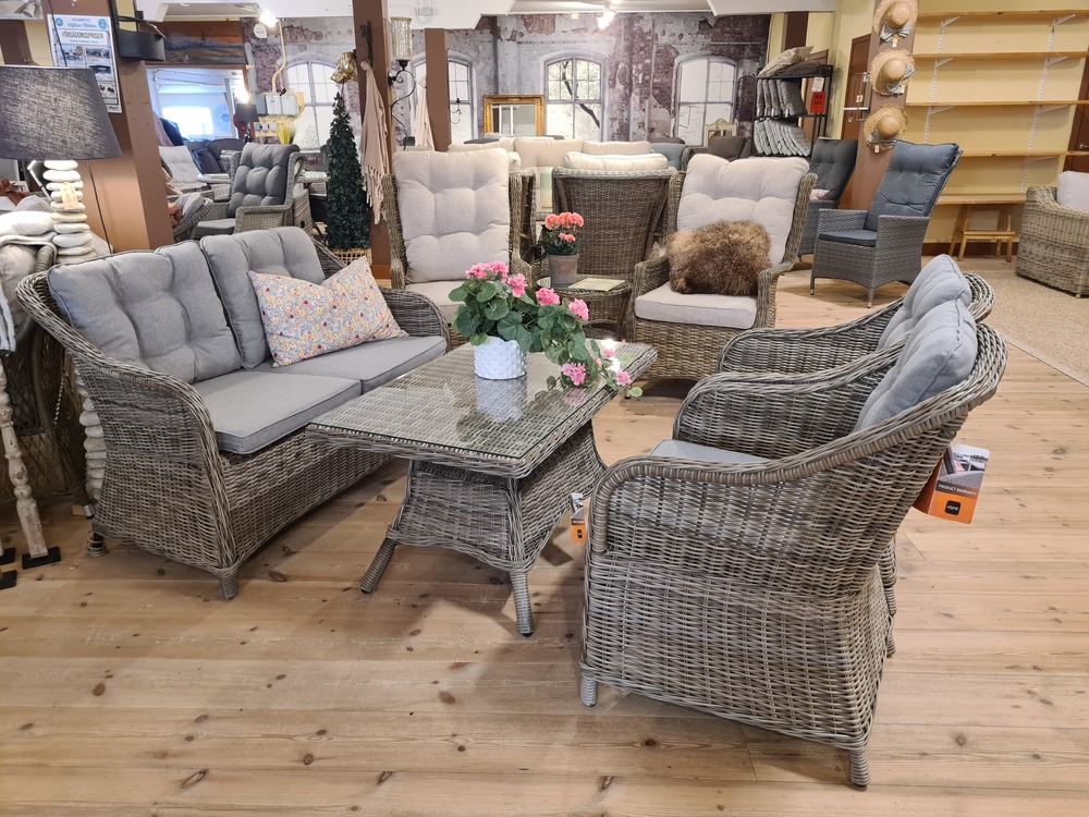 Lillhagen soffgrupp konstrotting 2 fåtöljer + 2-sits soffa + bord driftwood