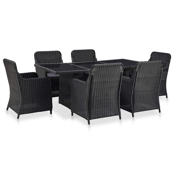 vidaXL Matgrupp för trädgården konstrotting 7 delar svart