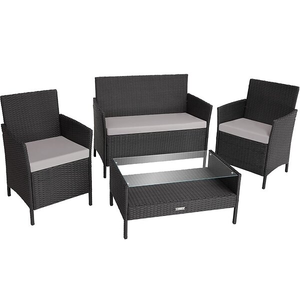TecTake Soffgrupp Madeira i konstrotting svart/grå