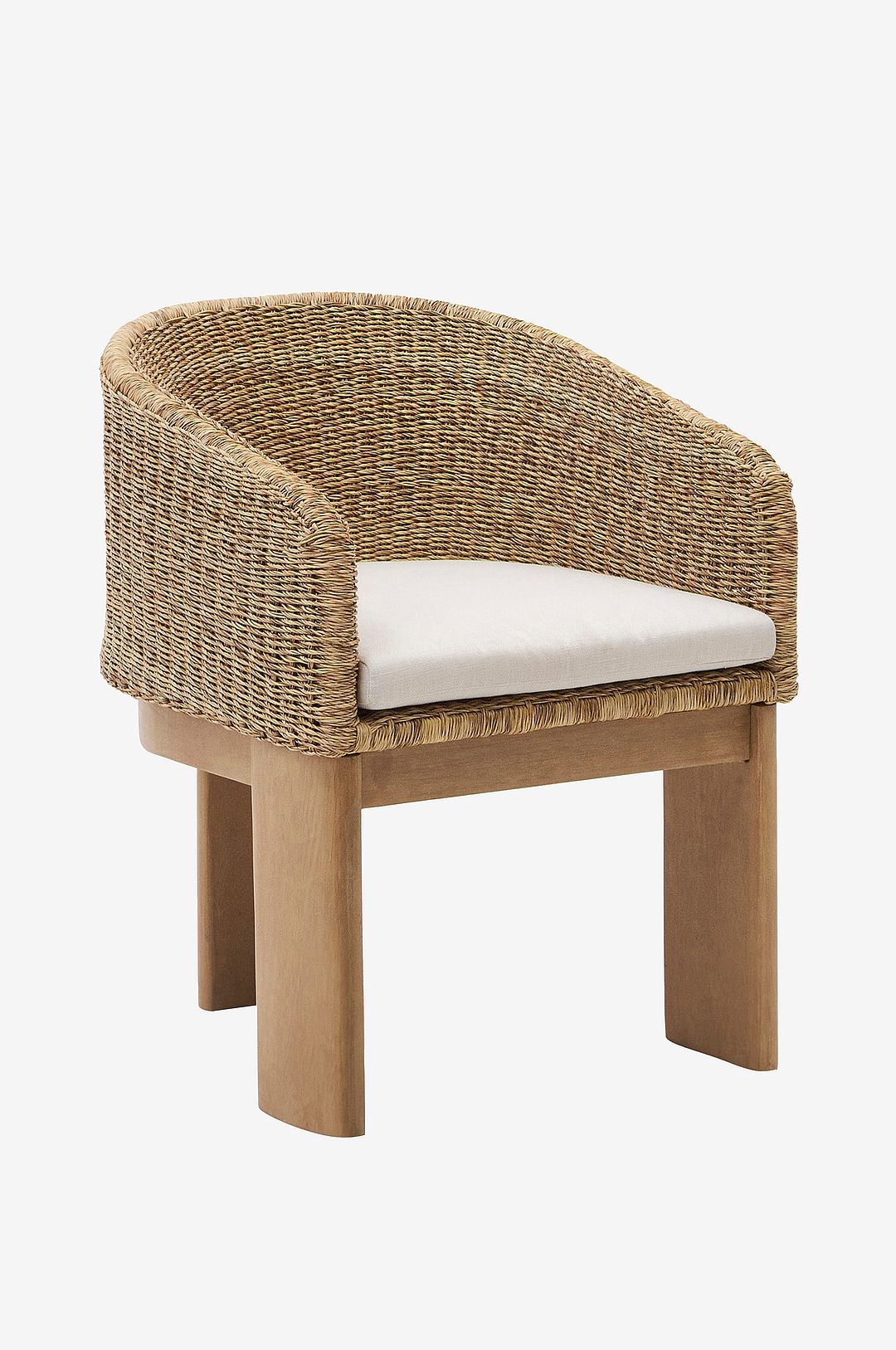 Atleve Tea time fåtölj/stol konstrotting seagrass och dynor tyg lin