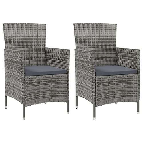 vidaXL Trädgårdsstolar med dynor 2 st konstrotting grå, stolar, utestolar, terrasstol, stol, utestol, terrasstolar