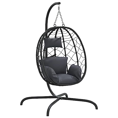 vidaXL Hängstol med dyna antrait konstrotting & stål, gungstol, gungstolar, utestol, hängstol, hängstolar, utomhusstol, äggformad stol