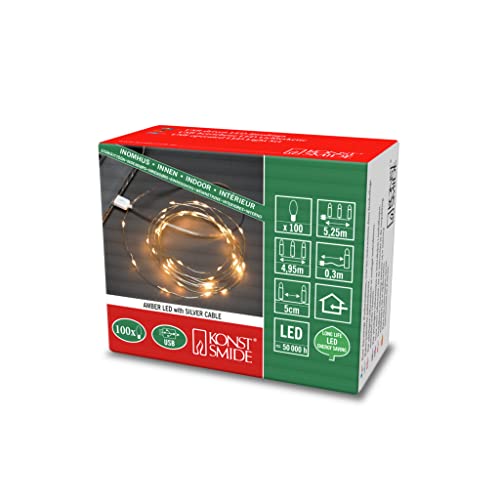 Konstsmide USB ljus/100 bärnstensvita dioder/inomhusbruk/4,95 m mikrosilverfärgad tråd/genomskinliga kabelstränglampor