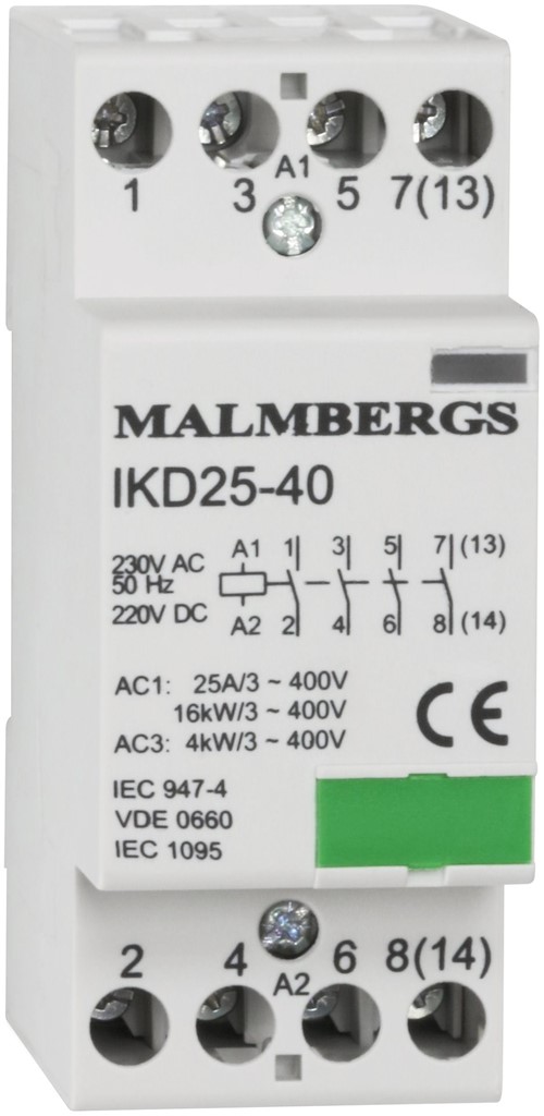 Kontaktor, 4-pol, 400V, 16kW, 25A