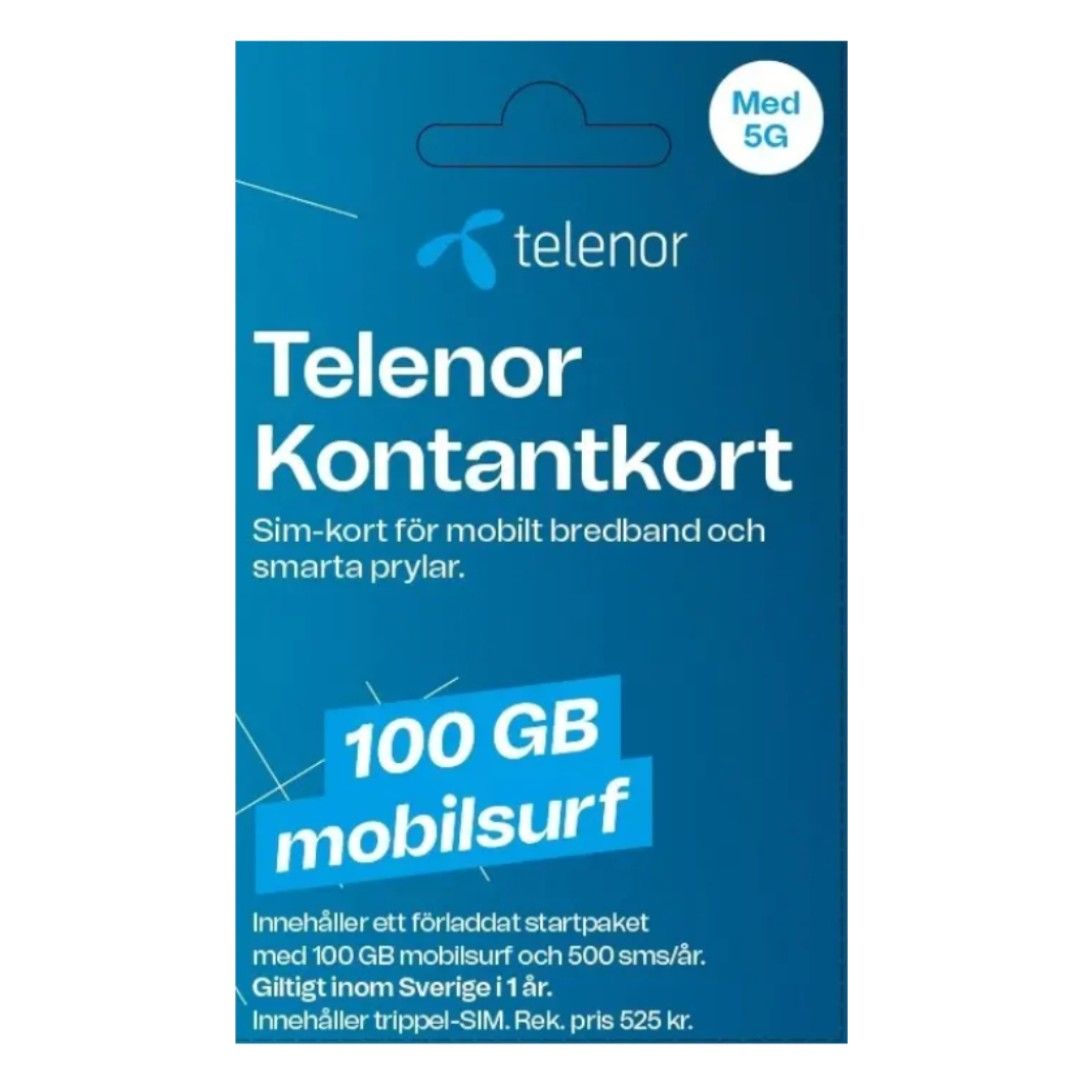 Telenor kontantkort för 5G/4G mobilt bredband i 1 år (100 GB + 500 SMS)