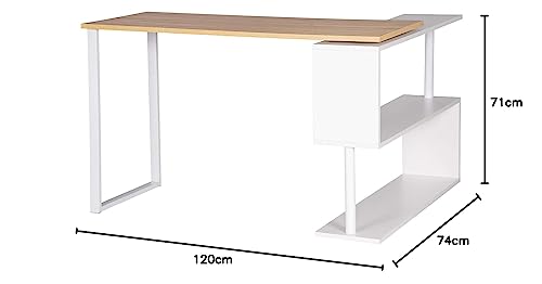 WOLTU® Skrivbord TS64ws, datorbord, hörnskrivbord, vinkelskrivbord, vinkelkombination, kontorsbord, arbetsbord, PC, laptopbord med hyllor, 120 x 100 x 77 cm (B x D x H), MDF, vitt