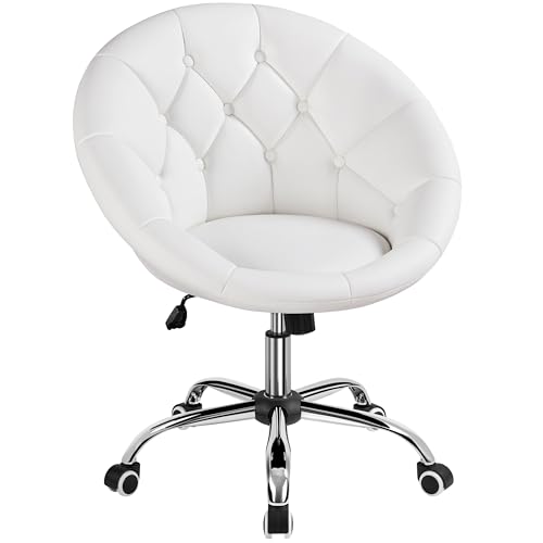Yaheetech Kontorsstol, ergonomisk skrivbordsstol, höjdjusterbar kontorsfåtölj, hemmakontorsstol med tuftad sits, stoppad fåtölj, rund snurrstol för sovrum kontor vardagsrum vit