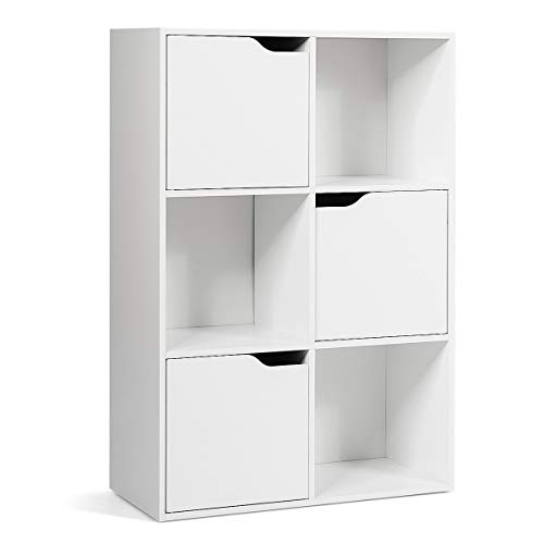 COSTWAY Bokhylla med 6 fack, 3 dörrar, stående hylla vit, kontorshylla fristående, mapphylla arkivhylla förvaringshylla, 60 x 29 x 90 cm, HW63873-GMDE