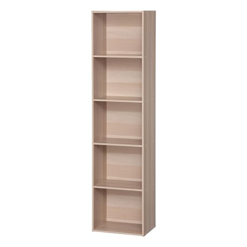 Bokhylla med 5 fack, stående hylla, kubhylla, kontorshylla, förvaringshylla, 50 x 24 x 104 cm, natur