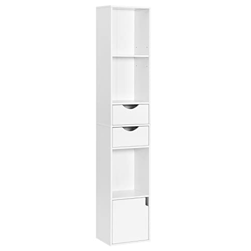 WOLTU Bokhylla bokskåp stående hylla förvaringshylla kontorshylla, med 6 hyllor 2 lådor 1 dörr, gjord av trämaterial, för vardagsrum sovrum kontor, vit, SK042ws