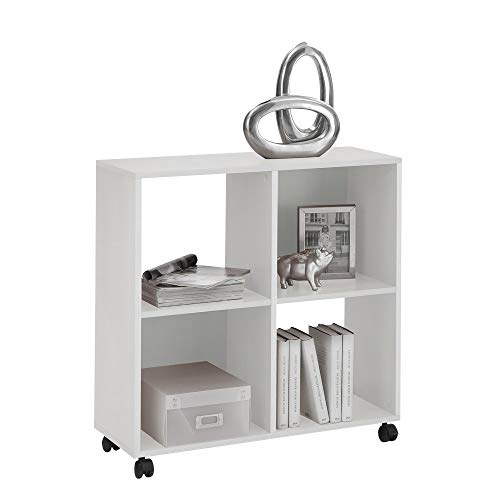 FMD möbler kontorshylla bokhylla på rullar perfekt för A4-mappar, vit, 72 x 77 x 33 cm (BxHxD)