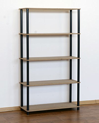 WOLTU Bokhylla bokskåp med 5 fack, stående hylla förvaringshylla kontorshylla arkivhylla, öppen fristående hylla, för vardagsrum kök kontor, ljus ek, 60 x 144 x 24 cm, SK022hei