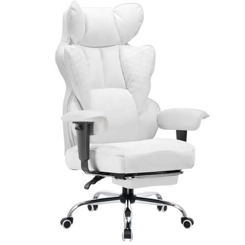 COMHOMA Kontorsstol 150 kg, spelstol, gamingstol, ergonomiska spelstolar med brett säte hög ryggstol i läder, justerbara armstöd, ländstöd med säckfjädrar