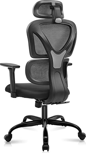 Hibisaws Ergonomisk kontorsstol, skrivbordsstol med justerbart nackstöd, armstöd, ländryggsstöd, snurrstol, vippfunktion, chefsfåtölj av nät, ryggvänlig, 360° vridstol, upp till 150 kg