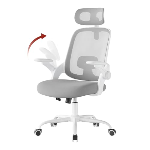 Songmics Kontorsstol, skrivbordsstol, ergonomiskt ryggstöd, höjdjusterbar, uppfällbara armstöd, snurrstol med nackstöd, kan belastas upp till 150 kg, duvgrå OBN088GD01