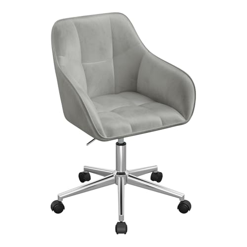 WOLTU Homeoffice BS145hgr kontorsstol, svängbar makeup, höjdjusterbar, lastbar upp till 150 kg, med armstöd, sammetssats, för sovrum, kontor, vardagsrum, ljusgrå